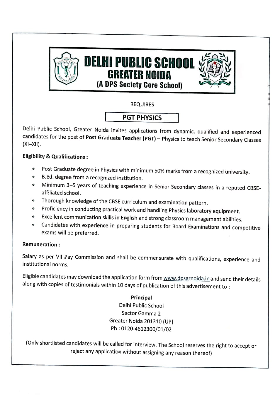 Application Form for Teaching Staff